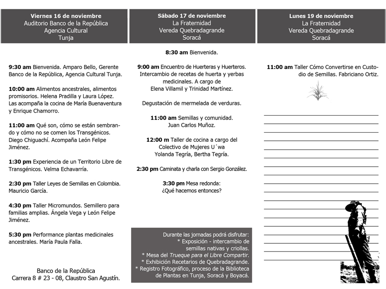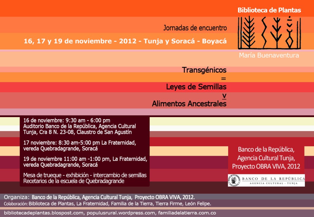 * Como biblioteca viva, que debe ser renovada, que no siempre tendrá lo mismo, cuestiona el afán del archivo muerto, los bancos de semillas tecnologizados, ausentes del mundo, secretos, hechos a espaldas de todos y de propiedad privada.