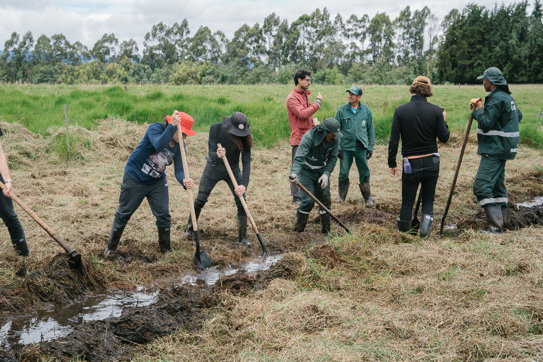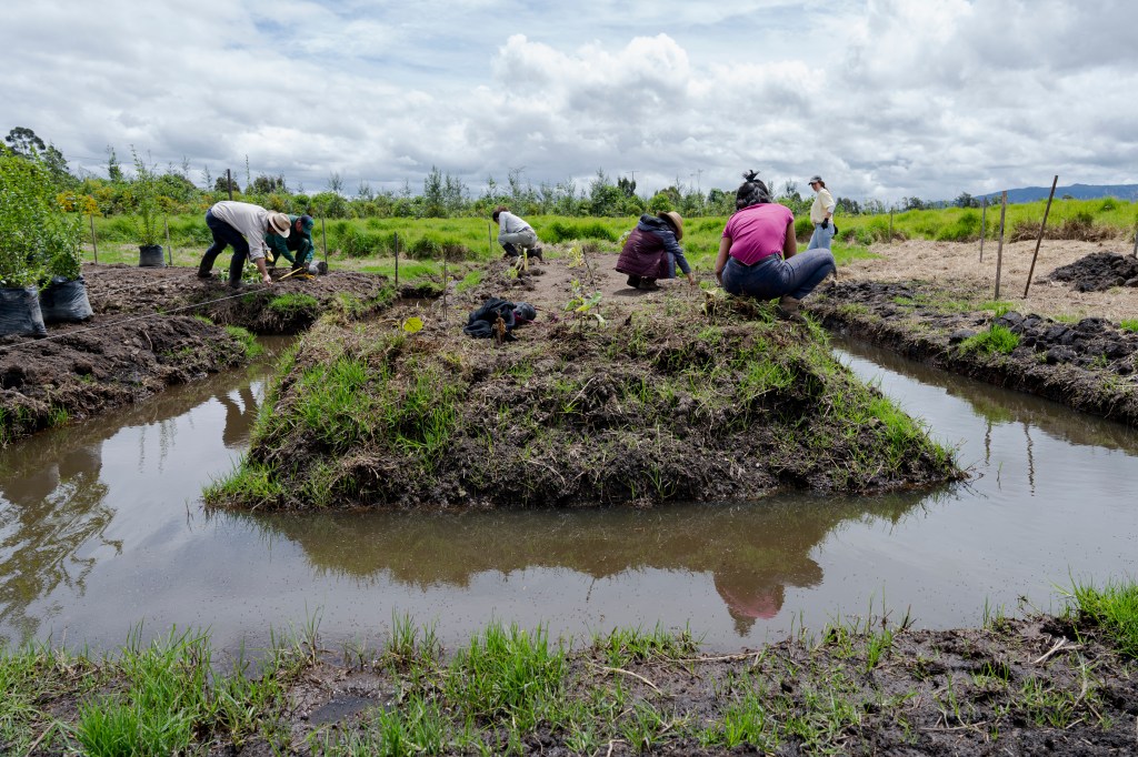 Siguiendo estas memorias vivas, el colectivo zanjas y camellones, propone reconstruir, a modo de aula viva también, un fragmento de aquel paisaje situado entre tierra y agua, en una área pequeña del predio Las Mercedes cercana al humedal La Conejera, área que justamente conserva hoy un alto nivel freático, la característica más importante para dar vida a esta reconstrucción.