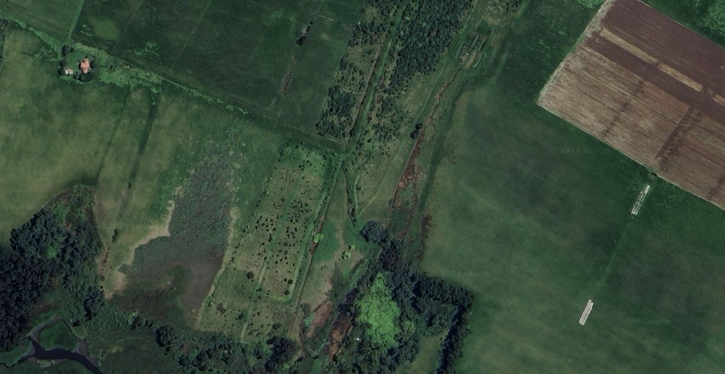 Camellones muiscas aún visibles en el humedal Jaboque, curvos y rectos, febrero 2022. Foto María Buenaventura