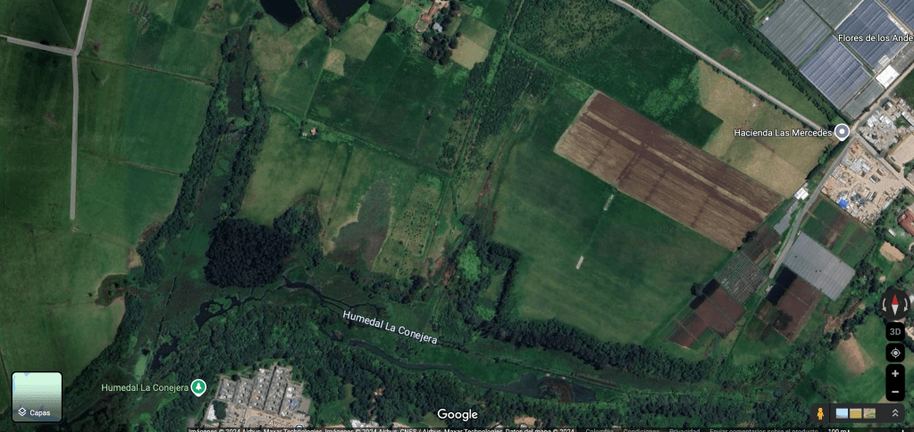 Según los estudios que hemos realizado en archivo, y en terreno, de la mano de la historiadora y arqueóloga Lorena Rodriguez Gallo, una de las personas que más ha estudiado los camellones de la Sabana de Bogotá, precisamos que en el predio Las Mercedes hay camellones delgados, ubicados al nororiente del Bosque Las Mercedes, y unos más anchos y largos hacia la zona del Humedal La Conejera.