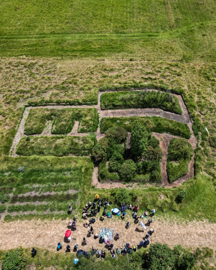 Una vez obtenido el permiso del Jardín Botánico de Bogotá, para recrear los camellones en el lugar, solicitamos a la abuela Blanca Nieves Ospina, sabia muisca de Suba, hija de la gran quebrada La Salitrosa, su intervención para pedir permiso al lugar, ritual que hicimos el 9 de abril de 2022.